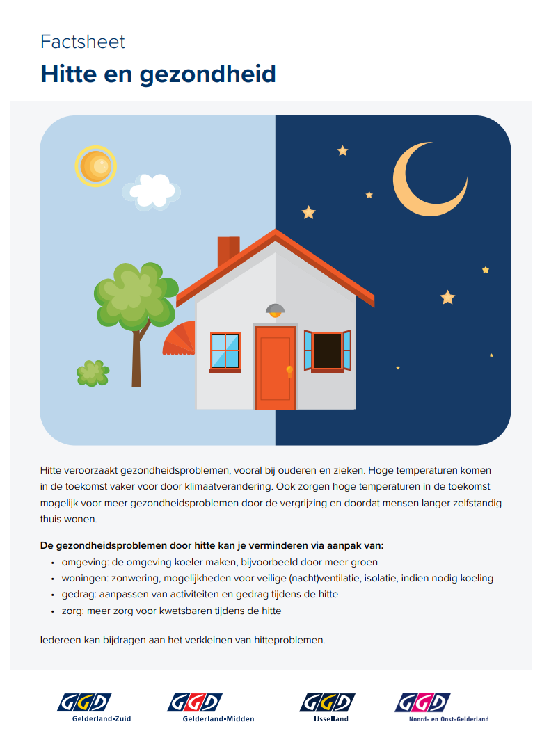 Aanvullend onderzoek Hitte Belevingsonderzoek - TAUW Hitteproef in woningen - HvA & TAUW Mindmap 'hitte in de stad’ - HvA Gezondheidsrisico’s van zomerse omstandigheden - GGD Bureaustudie gebruiker - RiVM Factsheet ‘hitte en gezondheid’ - GGD Van Hittestress naar verkoeling in de stad - Platform31 Financiële instrumenten klimaatadaptief bouwen - Deloitte Groen en wonen Webinar Hittestress - Woonbond