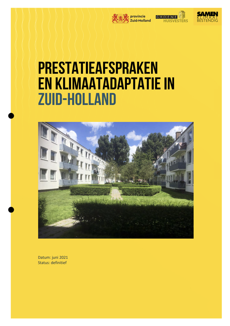 Een praktische rapportage die laat zien hoe klimaatadaptatie (o.a. hitte, water en vergroening) concreet kan worden opgenomen in prestatieafspraken tussen gemeenten en woningcorporaties in Zuid-Holland, inclusief voorbeeldafspraken en tips voor samenwerking.